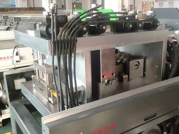 Corta distancia entre el troquel de punzonado y de corte capaz de limitar la longitud de desperdicio del material de arranque a 0.02m y la longitud del residuo del material final dentro de 1 metro.