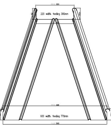 | Perfil cónico de ancho efectivo | El más estrecho para el lado cónico: 220mm; el más ancho para el otro lado: 700mm (Rango de pendiente: 0~2.5 grados.) |