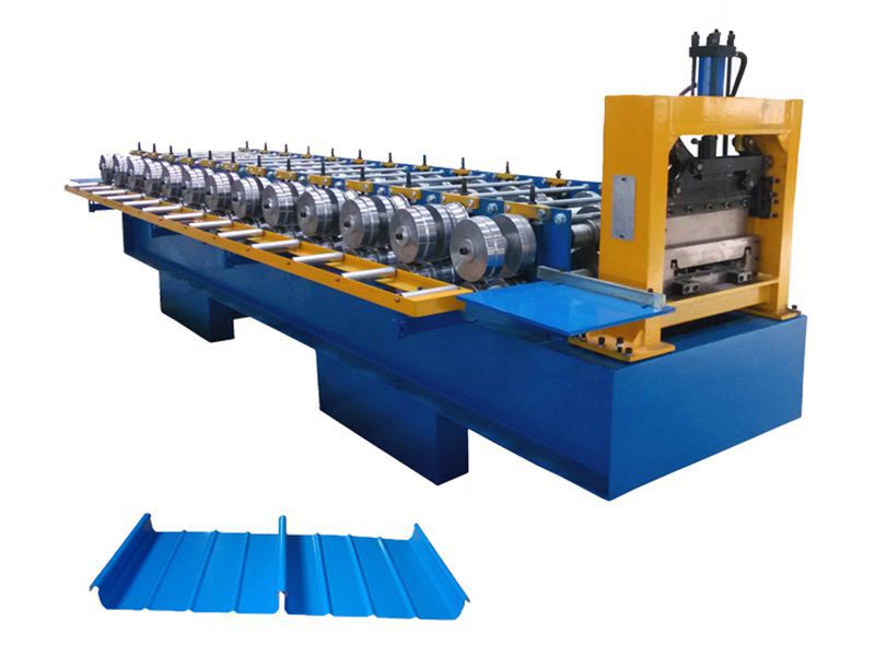 La máquina perfiladora de junta alzada (cubierta de techos) YX65-400-425 está diseñada para producir perfiles rectos y cónicos con un ancho de 400mm y 425mm. Esta máquina perfiladora de techo de metal puede perfilar material de aluminio con un grosor de 0.7-1.0mm y material de acero con un grosor de 0.5-0.8mm. La adopción del sistema de control PLC realiza la producción automática de una manera conveniente y sencilla. La estructura compacta permite cargarlo en un contenedor de 20GP, lo que permite un fácil transporte al sitio de construcción del cliente.