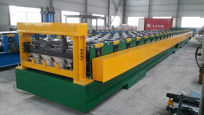 La máquina perfiladora de cubierta para piso YX75-900 se utiliza para hacer cubiertas de metal para la industria de pisos. Aquí se muestra la máquina perfiladora de cubierta para piso con un ancho efectivo de 900mm para su referencia.